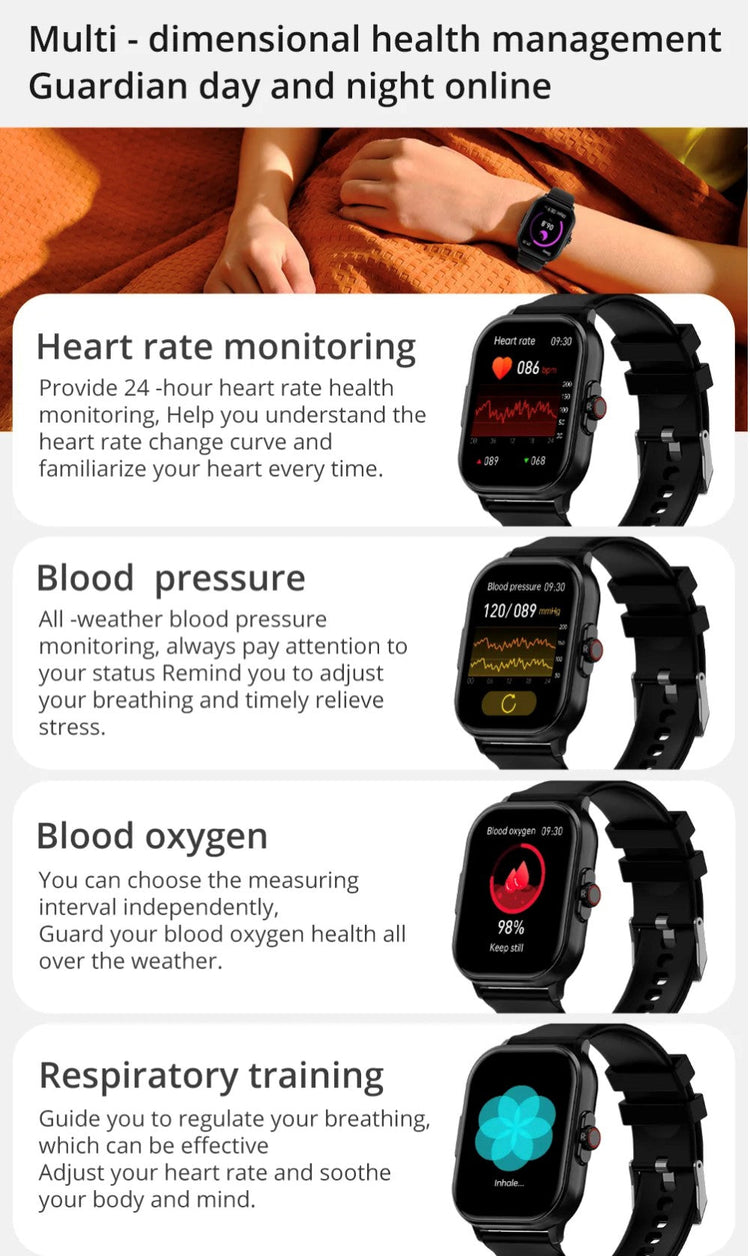 Introducing the BT Call GPS Smart Watch for women, where style meets health innovation. Elevate your fashion and track your well-being effortlessly with noninvasive blood monitoring. Embrace the fusion of sophistication and health empowerment on your wrist